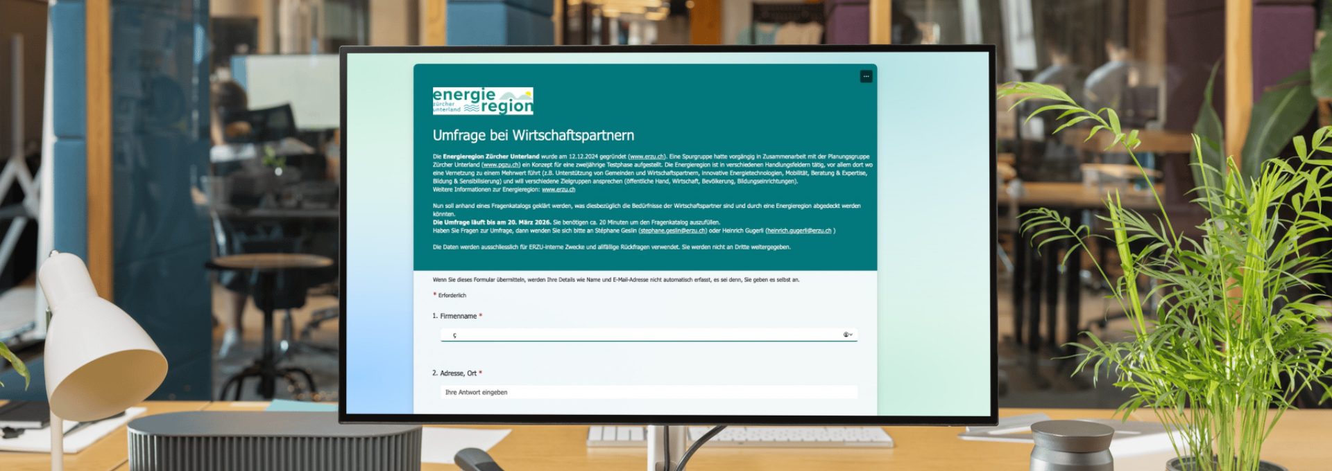 Unser Mitglied Energieregion Zürcher Unterland (ERZU) leistet einen wichtigen Beitrag zur nachhaltigen Entwicklung unserer Region. Um Wirtschaftspartner in der Region zukünftig bestmöglich unterstützen zu können, möchte die ERZU in einer Umfrage die Bedürfnisse von Unternehmen aus dem Zürcher Unterland abholen.